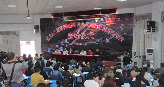![]() ![]() 我校作为一所师范性大学,按照省委、省政府要求,从2009年开始在鹤峰县太平镇驻点,驻一个村,辐射一个镇。学校在圆满完成省委省政府规定任务同时,又充分利用其教育资源优势为鹤峰县教育办实事,做好教育扶贫。5月26日上午,我校教育扶贫、鹤峰县送教培训活动在县中等职业技术学校报告厅启动。鹤峰县县委常委、副县长钱文彬,县教育局局长陈武松,校党委书记张国秀、副校长胡兴、校长助理左林霞及教师教育学院党总支书记袁先潋、副院长王金涛等出席该启动仪式。26、27日学校组织的省级8名送教团队的教学专家、一线名师对206名鹤峰县农村小学语文、数学一线教师开展了第一批送教培训,帮助他们更新教育教学理念,解决教学工作中的困惑及问题,提高实施素质教育、开展有效教学的能力和水平。