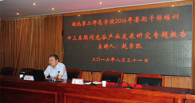 ![]() 培训班还邀请了光谷创新发展研究院院长赵荣凯作了《关于东湖高新区十三五产业发展的若干思考》的专题报告。他回顾了“十二五” 东湖高新区的发展历程,用详细的数据、图片以及专业分析,解读了东湖高新区“十三五”发展规划。报告信息量丰富、前沿,令人耳目一新。