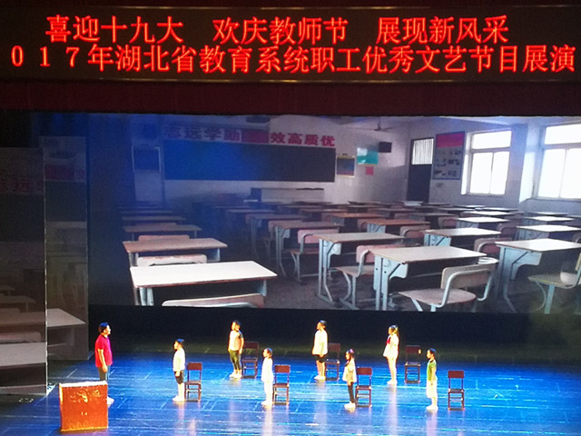 ![]() 展演现场,武汉大学诗朗诵《我亲爱的祖国》、长江大学歌舞《浪遏飞舟》、黄石市教育工会话剧《最后一堂课》、武汉市长春街小学联唱《京剧荟萃》等节目精彩纷呈,内容丰富,高潮迭起,感染力强,充分体现了“喜迎十九大,欢庆教师节,展现新风采”的主题,全面展示了湖北省教职工孜孜以求、大爱无疆、无私奉献的精神。(图片:李道君)