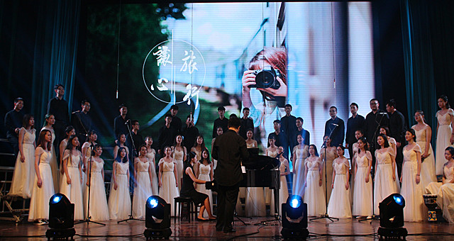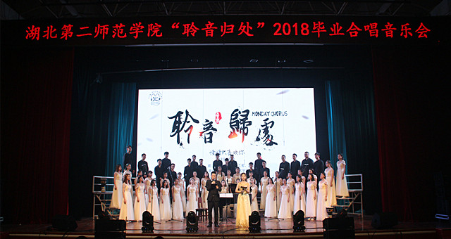 本网讯(记者 曹雨曦 见习记者 范进)6月14日晚,由学工部、团委联合主办,艺术学院漫笛合唱团承办的“聆音归处”2018毕业合唱音乐会在大礼堂举行。校长胡仲军,纪委书记刘昕及相关职能部门、各学院负责人、师生代表等到场观看。 ![]() “Baba yetu, yetu uliye, Mbinguni yetu……”晚会在充满非洲风情的祈祷歌《Baba yetu》中拉开序幕,手鼓、长笛、沙锤等伴奏乐器依次亮相,乐声时而高亢,时而低沉。“只要我们每次一起呼吸,就会给默契的欢欣,让心去旅行……”这首由青年指挥家、漫笛合唱团常任指挥吴昊老师作词作曲的《让心旅行》,以悠闲、欢快的风格,赢得现场热烈的掌声。
