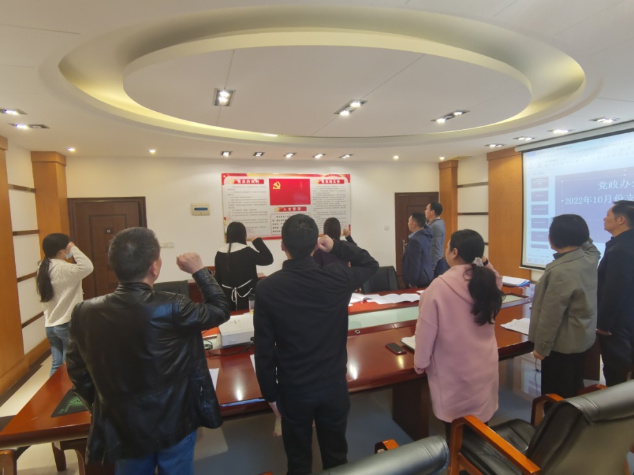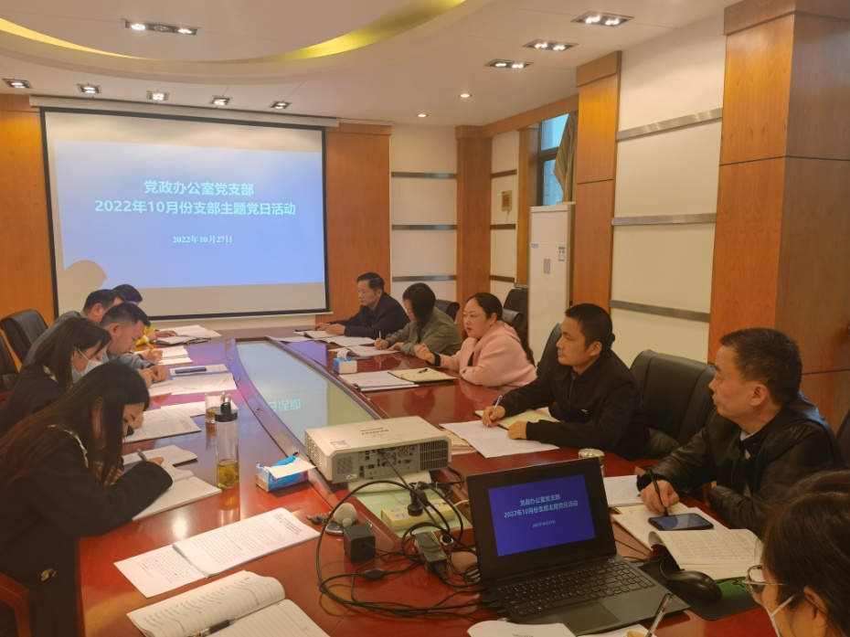 2022年10月27日, 党政办公室党支部开展了以“学习宣传贯彻党的二十大精神 守初心担使命培根铸魂育新人”为主题的主题党日活动。