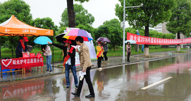 本网讯(学通社记者 余卓帆 黄琪 见习记者 郭霄雯)4月23日,2016年湖北省公务员考试于我校举行。此次考试在一号、二号教学楼设立118个考场,共有3540名考生参考,236名老师监考。 ![]() 学校高度重视此次考试。在考前,学工部召集40名志愿者组成阳光护考志愿服务队在考场附近维护考场秩序,并于学校南门756公交站和北门设立志愿者服务点为考生提供服务。开考前夕,校长胡仲军、副校长夏力,校长助理周忠等领导来到一号、二号教学楼视察考场。胡仲军耐心询问监考老师考场情况,检查考生携带物品,并对巡考工作提出具体要求。